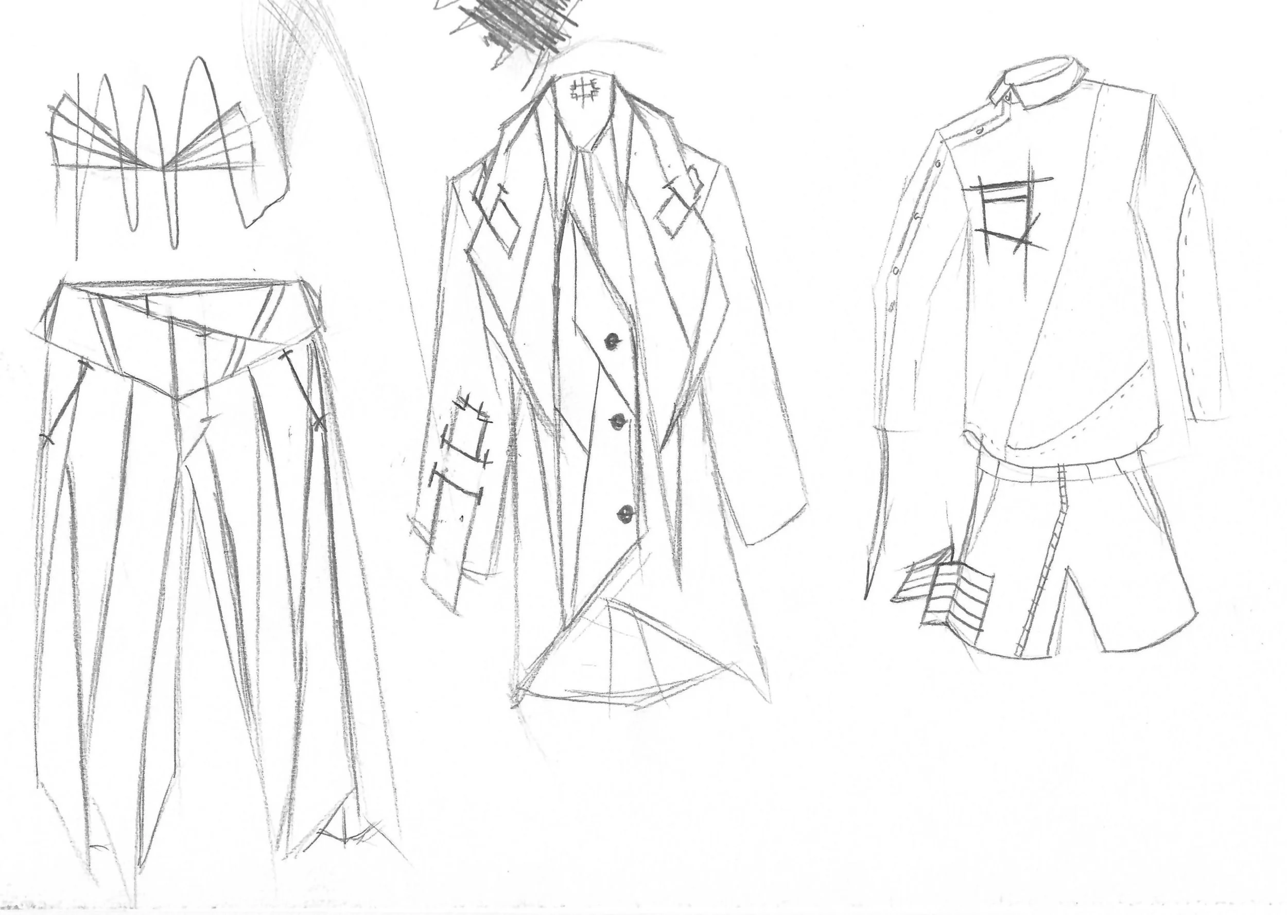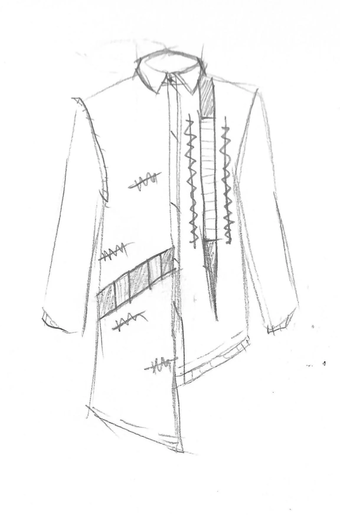 Re-imagination of traditional menswear. This collection is a combination of an intricately constructed, asymmetric shirt and trouser, alongside its simplified, symmetrical counterparts. Each look diverged in opposite directions, one maximized by re-oriented, angled seams across the body. The other streamlined by reduced seams and trim. Each look constructed in an uncommon combination of organic and synthetic fabrics, that further their disruption.